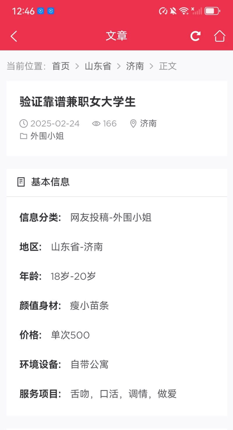 我第一才山东出差,懂的兄弟都懂找地方放松一下。我在网址找的妹子聊好以后就去找她玩。到了以后我找不到妹子还到电梯外等我。很贴心。就是居民楼不是那种骗子会所。放心玩。妹子是很欲的类型,我很喜欢。就是照片那种。可以内射,但是得商量加钱就能。后入也行没限制。花了1500过了夜,中间做了三次,把老兄我榨干了。年轻的小兄弟加油。
