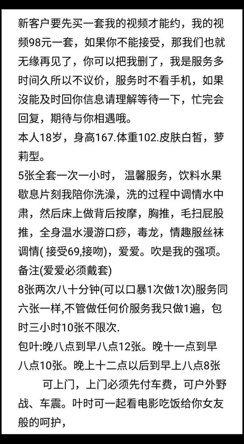 最近严打,好多地方都关门了.。晚上开车四处溜达,道口光明街几个地方都没开门。最后经过虞河路发现有地亮红灯。进去后见一女躺床上,问有没有特服,要价100。提枪上马,缴枪完活走人。 最近严打,好多地方都关门了.。晚上开车四处溜达,道口光明街几个地方都没开门。最后经过虞河路发现有地亮红灯。进去后见一女躺床上,问有没有特服,要价100。提枪上马,缴枪完活走人最近严打,好多地方都关门了.。晚上开车四处溜达,道口光明街几个地方都没开门。最后经过虞河路发现有地亮红灯。进去后见一女躺床上,问有没有特服,要价100。提枪上马,缴枪完活走人。。