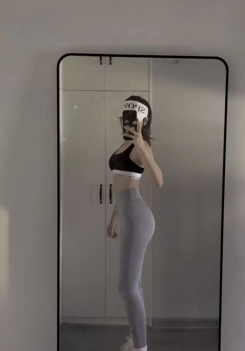 颜值身材: 爱健身、苗条匀称S型曲线、甚至有点马甲线,熊不算大,臀部一流!颜值有8分还是可以的。
