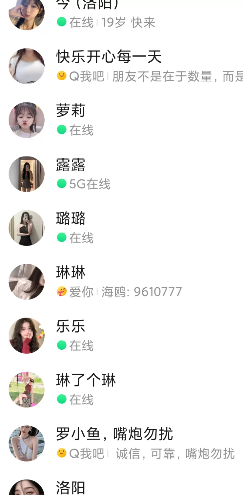 本人手里有二三十个洛阳的资源,自己也经常玩,所以都是自己玩过的,比较靠谱。兄弟们手里有的话可以换着玩,没了一包烟钱打包给你。妹子质量不会太差,我也比较看颜值。
